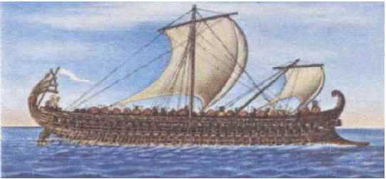 Before 800BC there was no dominant ship type used in the navies of the Aegean Sea. Most ships were little more than long boats of a primitive design. In war they were mainly used to transport troops and naval battles were boarding actions.