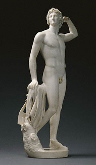 This 18th-century sculpture by Antonio Canova shows Apollo crowning himself with a laurel wreath. Our term poet laureate comes from Apollo's laurel wreath, because Apollo was the god of poets and writers. Artists, writers, and rulers were also frequently shown in European art wearing or holding wreaths.