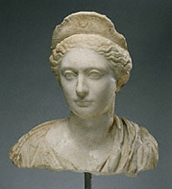 Above is a portrait of Vibia Sabina, the wife of Roman Emperor Hadrian (ruled A.D. 117–138). Hadrian declared Sabina a goddess after her death, and the diadem in her hair shows her changed status from mortal to goddess.