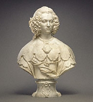 This 17th-century bust of an Italian noblewoman shows her wearing an elaborate hairstyle as well as costly jewelry and dress. Her family coat of arms is carved on the stand that supports the bust.