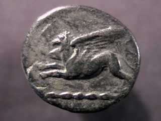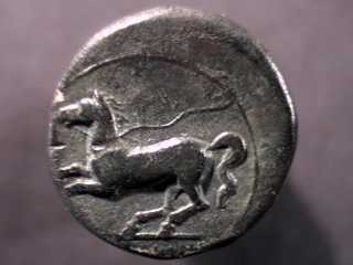 Kainon, Sicily, Æ26. c 340 BC, Griffin springing left / horse prancing left, KAINON in exergue. SNG ANS 1169.