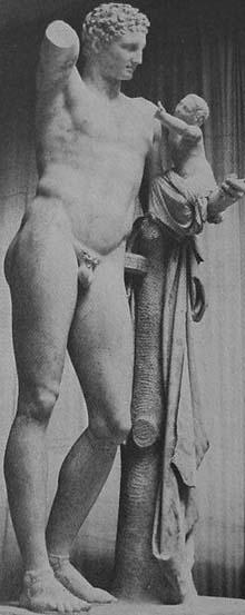 There are several famous sculptors from the Hellenistic period. One was Praxiteles (pracks-IT-uh-lees), who worked around 340 BC (the same time as Aristotle). Praxiteles carved a statue of Hermes and the infant Dionysos at the Temple Praxiteles also carved a statue of Aphrodite which was so lifelike (people say) that men actually fell in love with it and tried to kiss it. But this one does not survive, only a later Roman version.