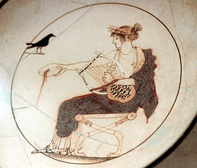 The Greeks also had lyres, which are like small harps, and might have sounded something like a guitar. According to the Greek story, the first lyre was made from a turtle shell by the god Apollo when he was a baby. Apollo was the god of reason and logic, and the Greeks thought of music as a great expression of order and patterns. Lyre music was played calmer, and more soothingly, than the pipes and drums.