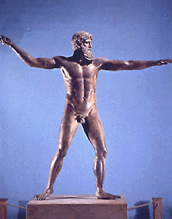 In the Severe style, sculptors began to make statues more true to life, and with more feeling in their faces and their movements. Instead of all being standing straight up and looking sacred and peaceful, now statues began to do things: drive a chariot, carry something, throw a spear, or ride a horse.