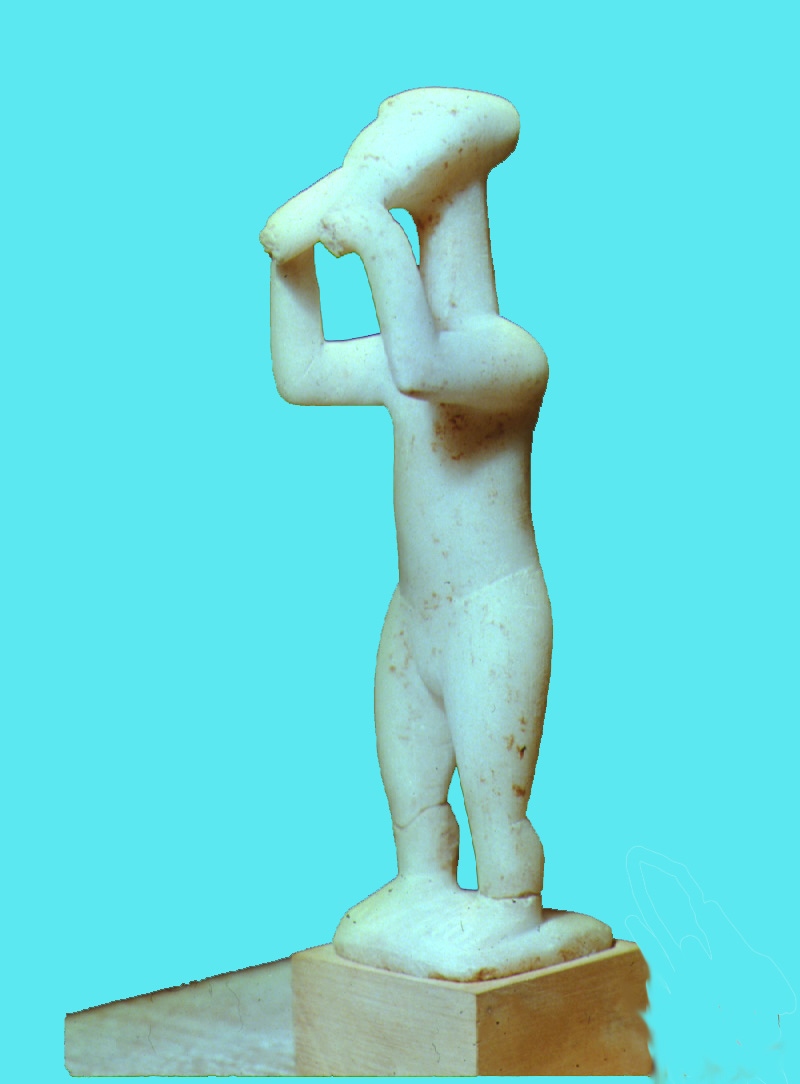 This is a Cycladic figurine of a man playing a flute - or anyway, some kind of pipes, like a double recorder.