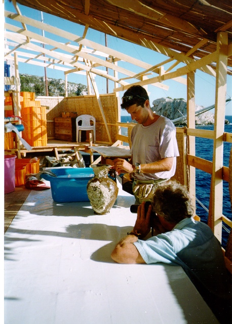 Much of the summer was devoted to preparing the site for full-scale excavation by cleaning and mapping the amphoras in the cargo. Three-dimensional mapping was accomplished by a new computerized system that combines calibrated 35 mm and digital cameras.