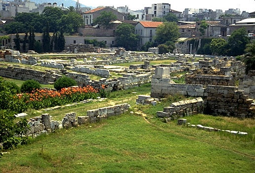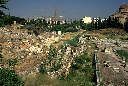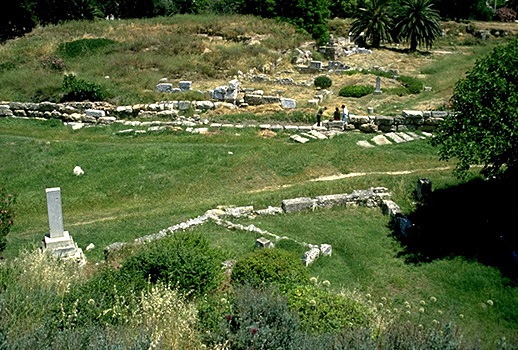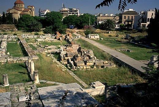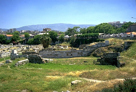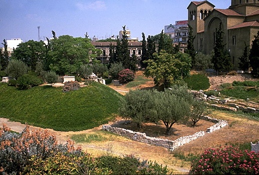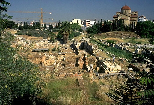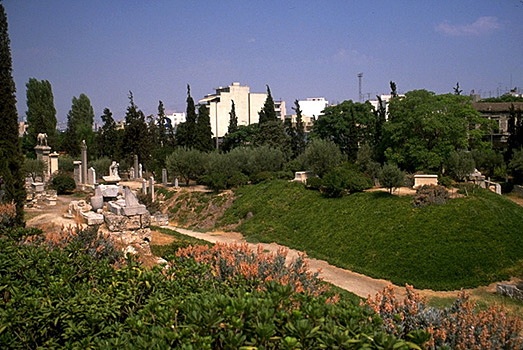 The Kerameikos was the name of the deme or section of Athens northwest of the Acropolis. Technically, it includes an extensive area both within and outside of the city walls. The "inner Kerameikos" (from the Greek Agora to the Dipylon and Sacred Gates) was the "potter's quarter" of the city. The "outer Kerameikos" (from the city walls towards the Academy), included the famous cemetery and the "demosion sema" (public burial monument) where Perikles delivered his funeral oration in 431 B.C.