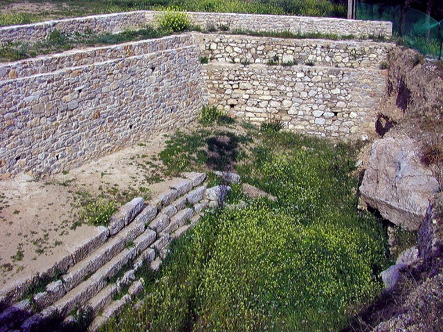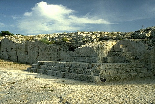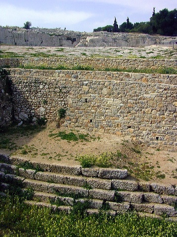 Pnyx II: Probably late 5th century B.C. In this phase the orientation of the auditorum was apparently reversed (a recontruction that is based more upon ancient literary sources than from the actual archaeological record). A stepped terrace wall was created on the north to support an artificial terrace, and the people sat facing a speaker's platform on the south. Part of the stepped terrace wall is preserved, as well as a staircase with rock-cut steps leading up to it from the direction of the Agora. The size of the auditorium (as it is restored by the excavators) is not that much larger than Pnyx I.