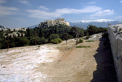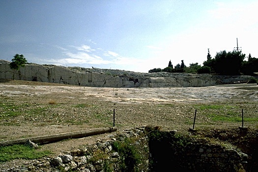Pnyx I: Probably constructed in the early 5th century. The people apparently sat on the hillside facing a speaker's platform on the north. The seating capacity may have been anywhere from 6000 to 13,000 people. This phase is represented archaeologically only by a few cuttings in the bedrock and a boundary stone (not found in situ), so that it is impossible to determine the date and size with any precision.