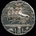 ![]() | Silver Decadrachm ca. 400&endash;375 BC Syracuse 29-126-41 Racing four-horse chariot with a flying Nike personifying Victory crowning the driver. The space below is filled with captured Punic arms. This spectacular coin may commemorate the victory of Dionysius I over the Carthaginian general Himilcon and the deliverance of Syracuse from its Punic siege in 396 BC The reverse of the coin is signed by Euaenetus, one of the most renowned coin designers of antiquity. Commemorative types became especially popular in the Hellenistic period after Alexander´s death in 323 BC Dia. 34.0 mm. Photo courtesy Public Information Office, Univ. of Pennsylvania Museum. |